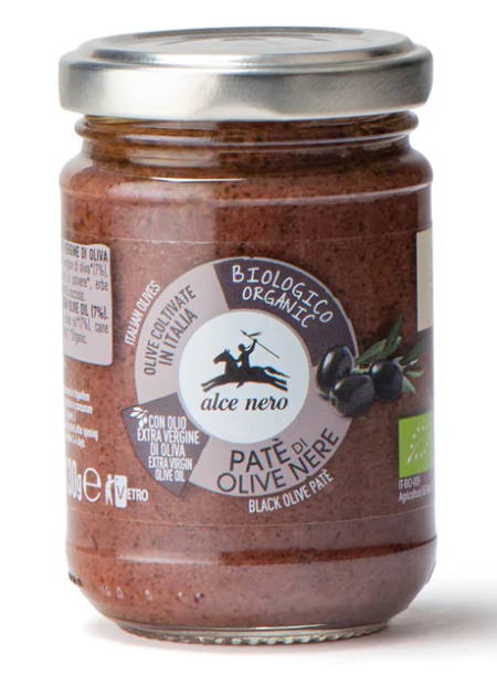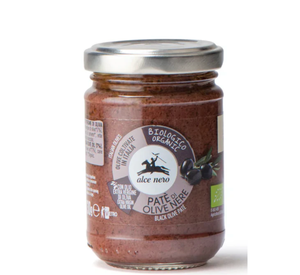 Sort oliventapenade af høj kvalitet, fremstillet i Italien af første klasses økologiske italienske oliven, beriget med ekstra jomfruolivenolie og økologiske aromatiske urter.