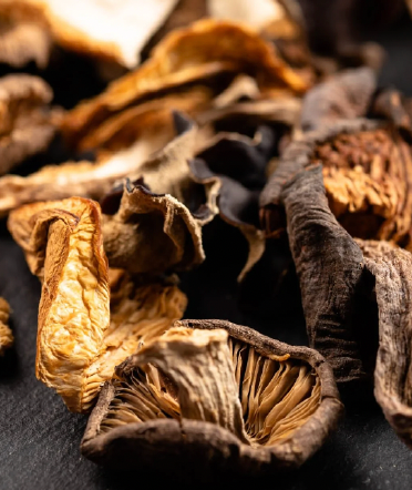 Håndplukket blanding af blandede skovsvampe, som rørhatte, østershatte, sorte svampe og shitake svampe, der efter plukning er nænsomt tørret.